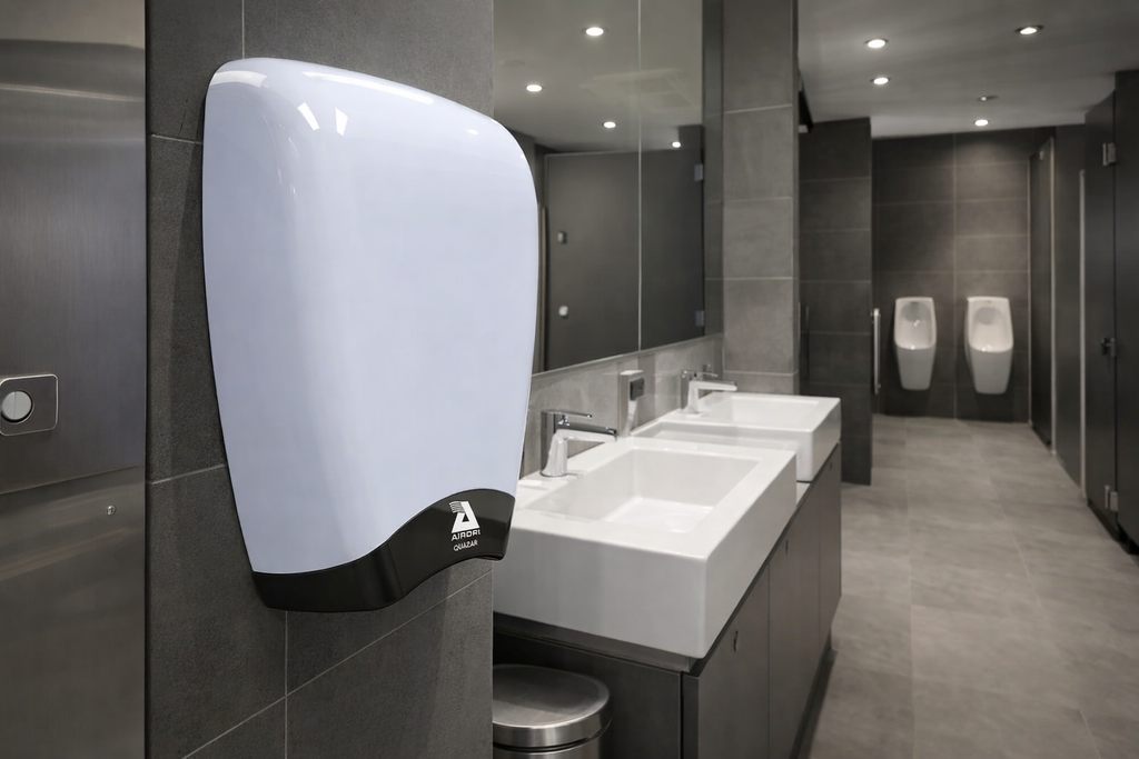 The Airdri Quazaris recognized as one of the most inclusive and quiet hand dryerson the market. Thanks to its ultra-slim profileand low noise level of only 70 dBA, it fits perfectly into confined spacesand noise-sensitive environmentssuch as accessible toilets, schools, spas, offices, pubs and restaurants.