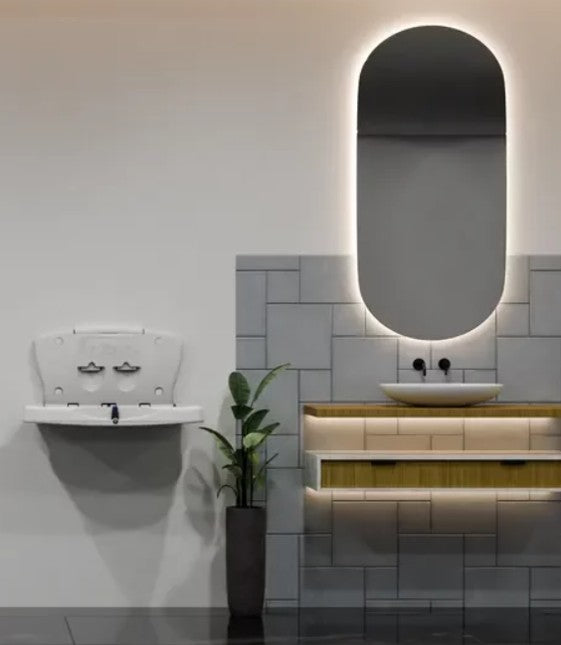 Son design compact permet un gain de place appréciable une fois repliée contre le mur, idéale pour les espaces réduits. Facile à nettoyer et entretenir, elle répond aux exigences d’hygiène grâce à deux réceptacles à lingettes intégrés et rechargeables. Elle est dépourvue de sangle, respectant ainsi les directives françaises en matière de sécurité.