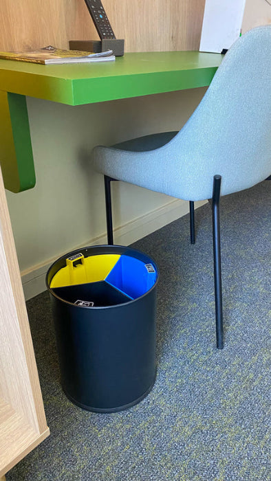 Grâce à un format compact, ces corbeilles s'intègrent facilement à côté des postes de travail, zones d'accueil ou restaurants.