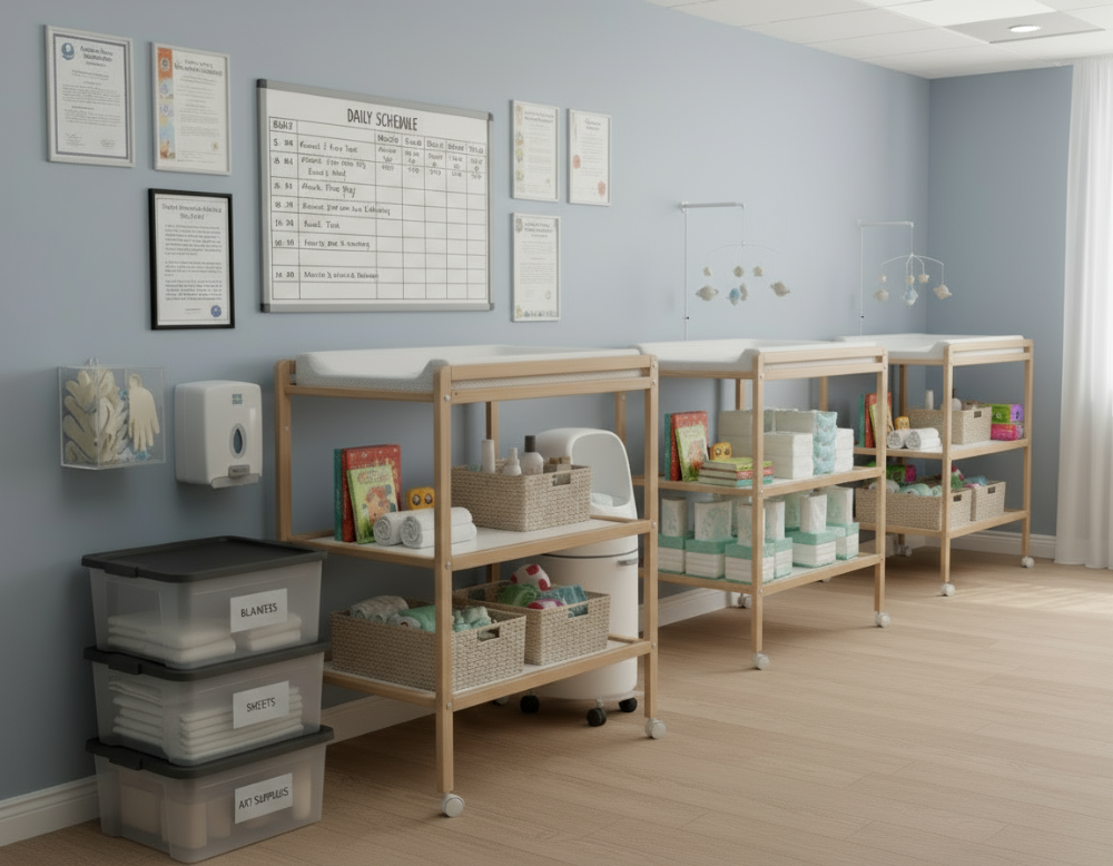 Sa double étagère permet un rangement optimisé , où vous pouvez organiser lotions, canapés et vêtements, assurant ainsi un accès rapide lors des changements. Facilement maniable grâce à ses quatre roulettes directionnelles, dont deux avec freins , cette table se déplace dans la pièce tout en restant stable lorsqu'elle est immobilisée .